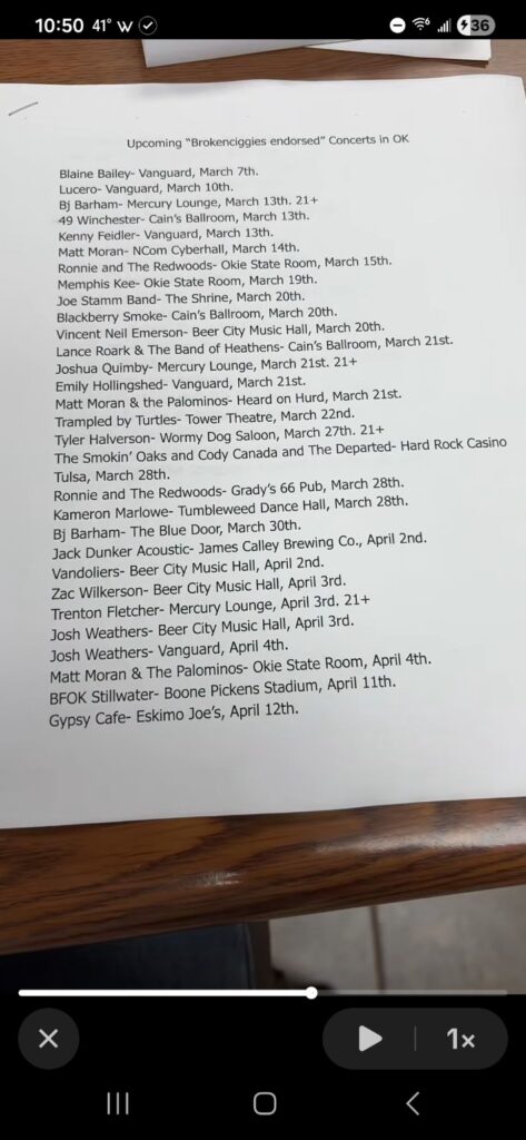 Some of the shows are big-ticket performances at venues like Cain’s Ballroom and Riverwind Casino. Others are the kind of late-night bar gigs and small-room sets that define the grassroots side of Red Dirt. For fans who follow the Red Dirt scene closely, this IS you roadmap for the next few months of live music. Be sure to list any shows she might have missed in the comments below.