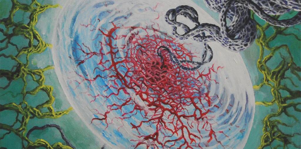 If this sounds overwhelming, it is—but more importantly, it’s really fun. Bruzzone’s sense of dynamics and pacing is remarkable, supercharging his songs with zigzagging melodies that wind up to neck-snapping releases. The first track is all over the place: Bruzzone’s opening charge launches into a jazzily atonal synth solo before unleashing a thrashing breakdown, which gives way to a guitar appearance from Krallice’s Mick Barr, which feeds into a shockingly well-executed clean vocal bridge, all of which culminates in another breakdown even nastier than the first one. There’s hardly a moment to get bored of any of Bruzzone’s ideas before he’s onto the next one. “Fatal Remedy of the Unyielding Plague” flies between lightspeed Meshuggah-like chugs that quickly get sucked into a cycling riff vortex which seems to have no beginning or end. Even when Bruzzone is repeating melodies, as with one snaking riff that appears toward the end of the first song and mutates into various incarnations throughout the album (slowing down, speeding up, and contorting alongside its surroundings), it manages to feel fresh each time.