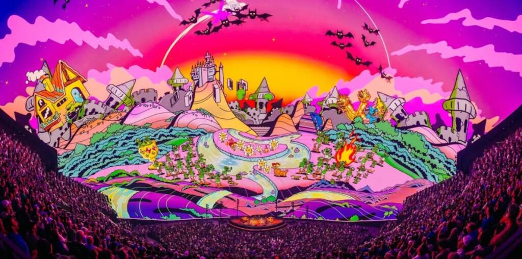 Next up was the first major surprise of the night: the rarity “Colonel Forbin’s Ascent” > “Fly Famous Mockingbird,” which provided the second stunning visual representation of Gamehendge in just over two years — the first, of course, being the 12/31/23 staged production of Trey Anastasio’s entire senior thesis.