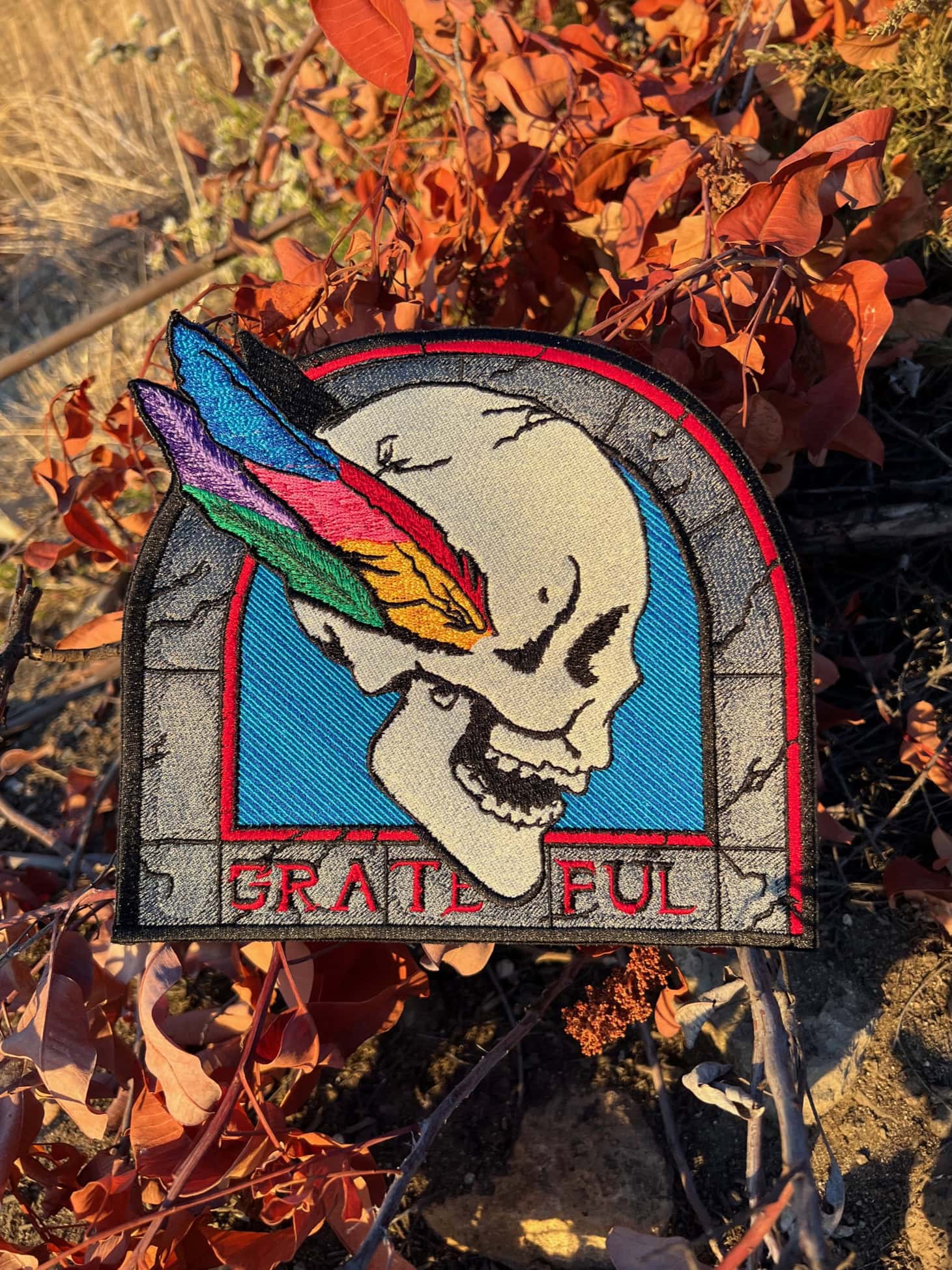 ‘1 Left. Feathered Skull Grateful Embroidery