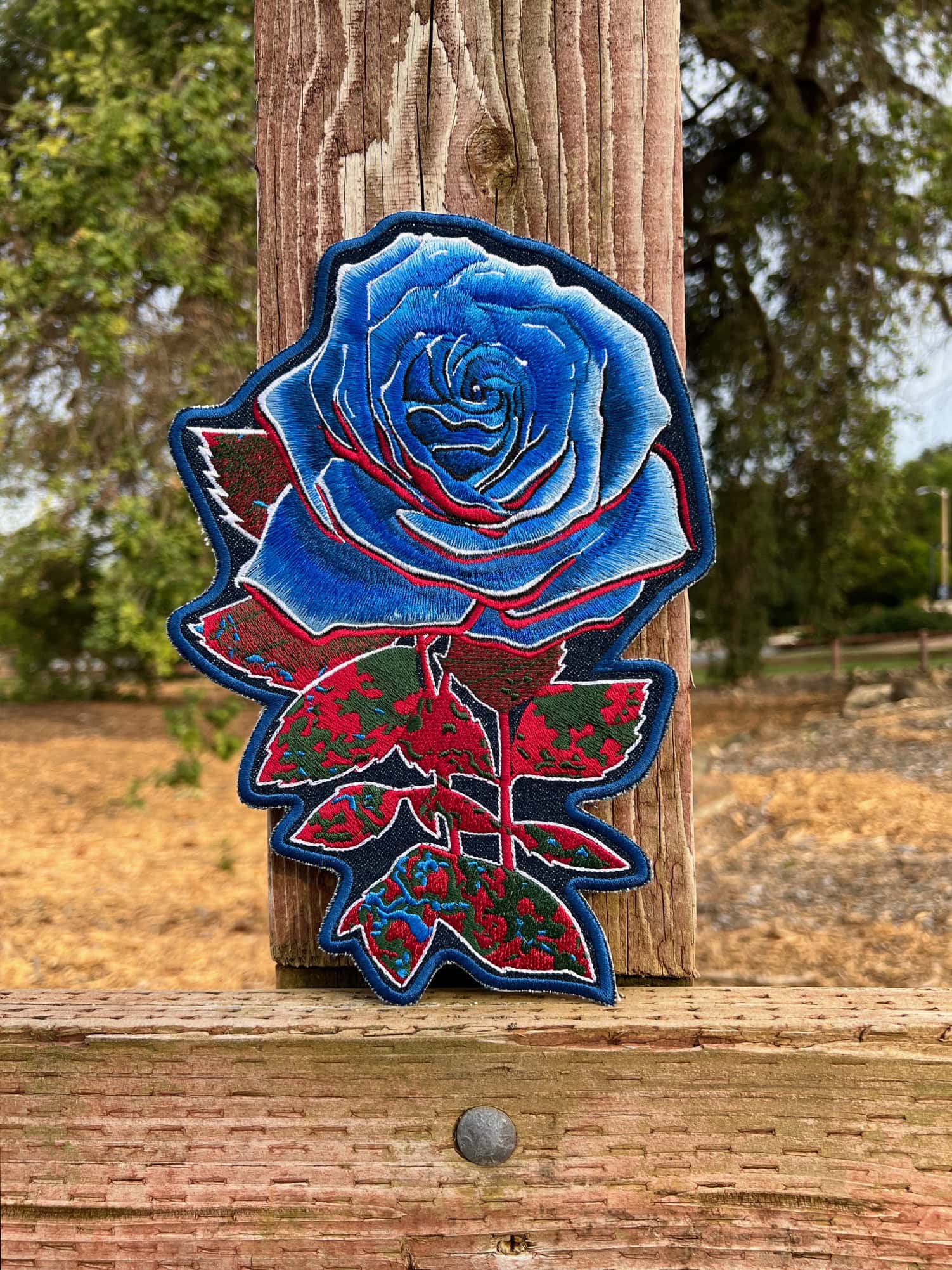 Ice Blue Rose Embroidered Patch